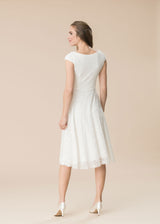 Schlichtes und elegantes Spitze-Hochzeitskleid, welches sich perfekt für die Ziviltrauung eignet. Dieses Kleid ist im Baukasten erhältlich, es ist also in vielen verschiedenen Varianten erhältlich.